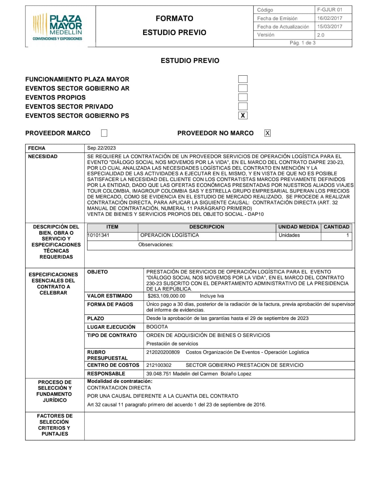 Este lunes, 25 de septiembre, Plaza Mayor Medellín, encargado del contrato 230 de 2023 con la Presidencia de la República, publicó un proceso en que busca una empresa que preste “servicios de operación logística para el evento ‘diálogo social nos movemos por la vida’”, justamente para cumplir con lo pedido por la Presidencia.