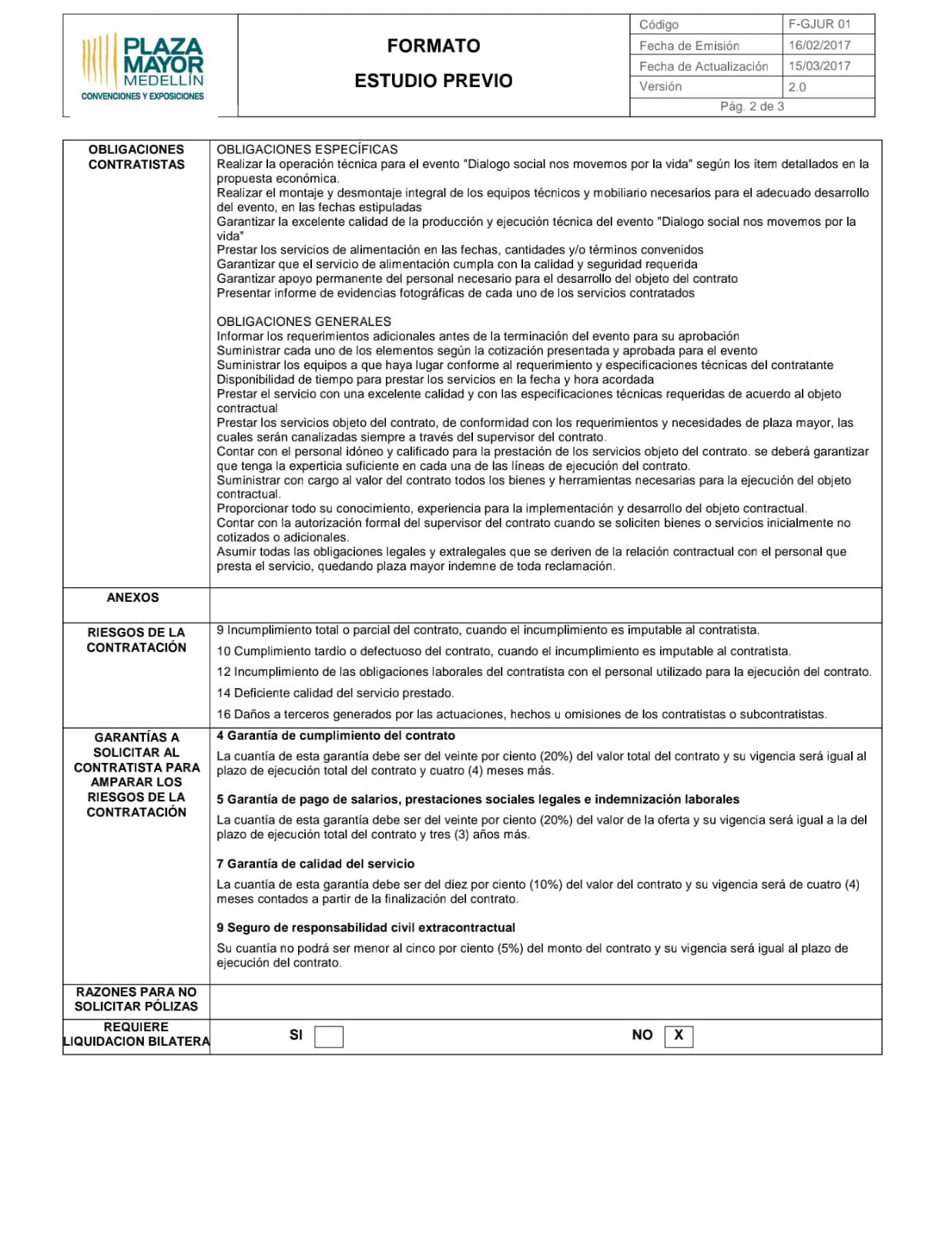 Las obligaciones de esa empresa que contrate Plaza Mayor, entre otras, serán: