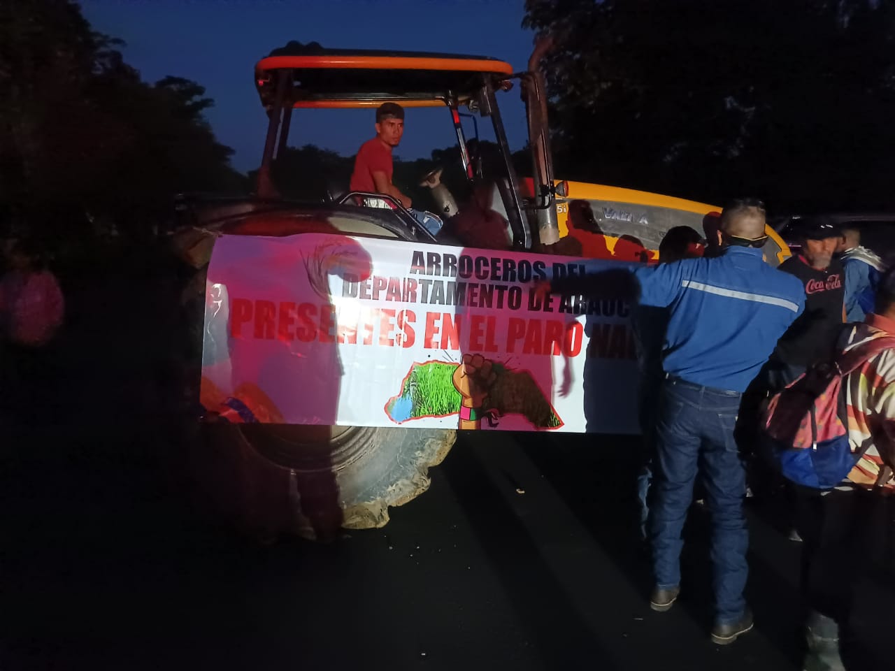 El bloqueo se da según el líder arrocero, Enrique Orozco en apoyo al gremio del departamento del Casanare que ayer bloquearon en el sector de aguazul, las peticiones son las mismas, los precios del arroz están por debajo de los costos de producción, lo que significa que los productores están trabajando a perdidas.