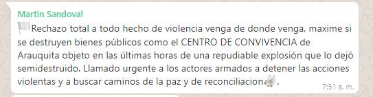 Varios han sido los mensajes de rechazo frente a lo ocurrido, algunos señalan el hecho como un acto contra los bienes de los arauquiteños.