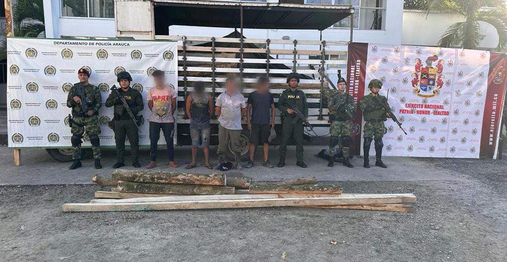 Por otra parte en el municipio de Saravena personal de la policía mediante actividades de prevención, registro, control en la Vía al municipio de Arauquita, en conjunto Ejército Nacional lograron la capturas de 4 ciudadanos por el delito, aprovechamiento ilícito de recursos naturales no renovables, ambos casos fueron dejados a disposición de la Fiscalía General de la Nación.