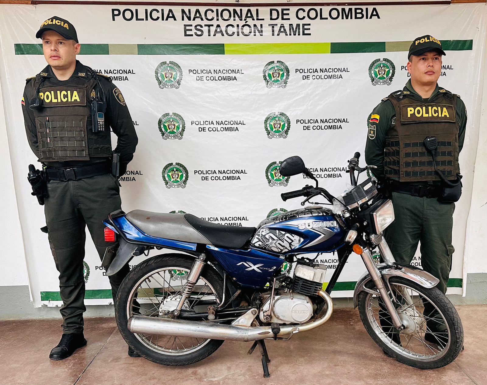 En Tame Policía recuperó motocicleta reportada como hurtada