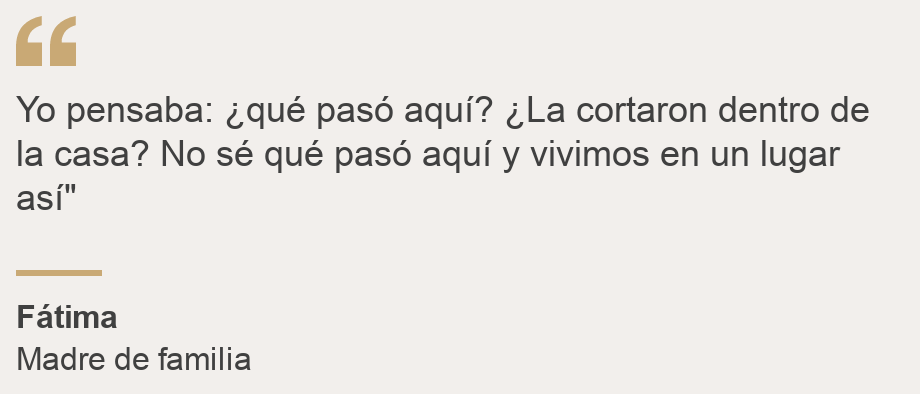 Fátima, que acababa de llegar a casa del trabajo, recuerda: “Yo pensaba: ‘¿qué pasó aquí? ¿La cortaron dentro de la casa?’. No sé qué pasó aquí y vivimos en un lugar así”, reflexionó.