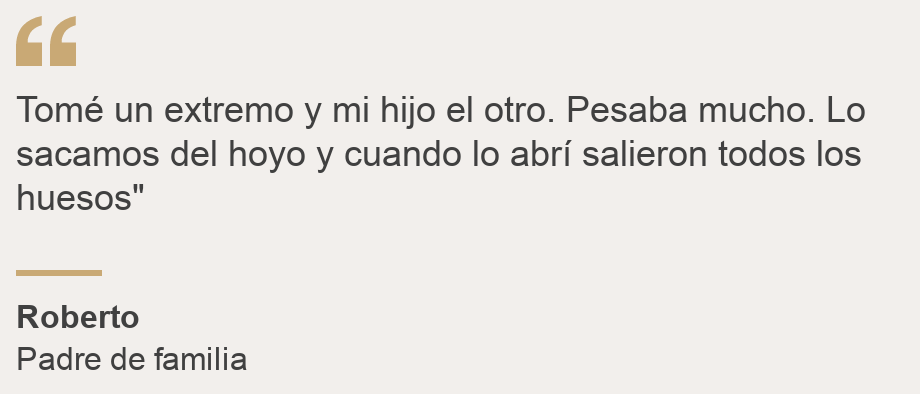 Cuando terminaron de cavar, vieron un edredón enterrado. “Tomé un extremo y mi hijo el otro. Pesaba mucho. Lo sacamos del hoyo y cuando lo abrí salieron todos los huesos”, dice el hombre.