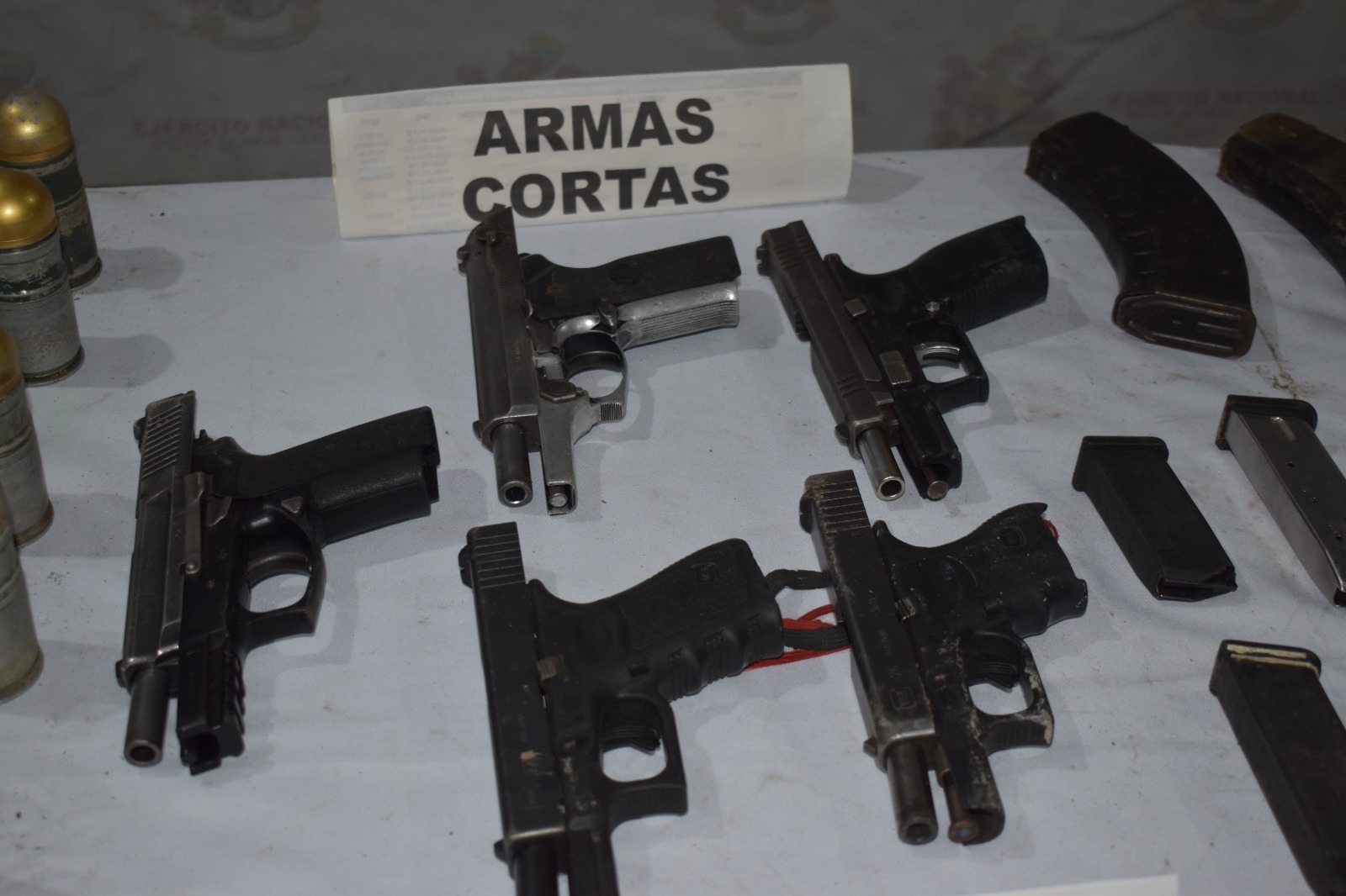 En el mismo hecho se incautó un fusil M4 calibre 5.56 milímetros, 2 pistolas, munición calibre 5.56 milímetros, proveedores para fusil y pistola, una granada de 40 milímetros y material de intendencia privativo de las Fuerzas Militares; implementos con los que se pretendía cometer homicidios selectivos, extorsiones y amedrantamiento a la población civil.