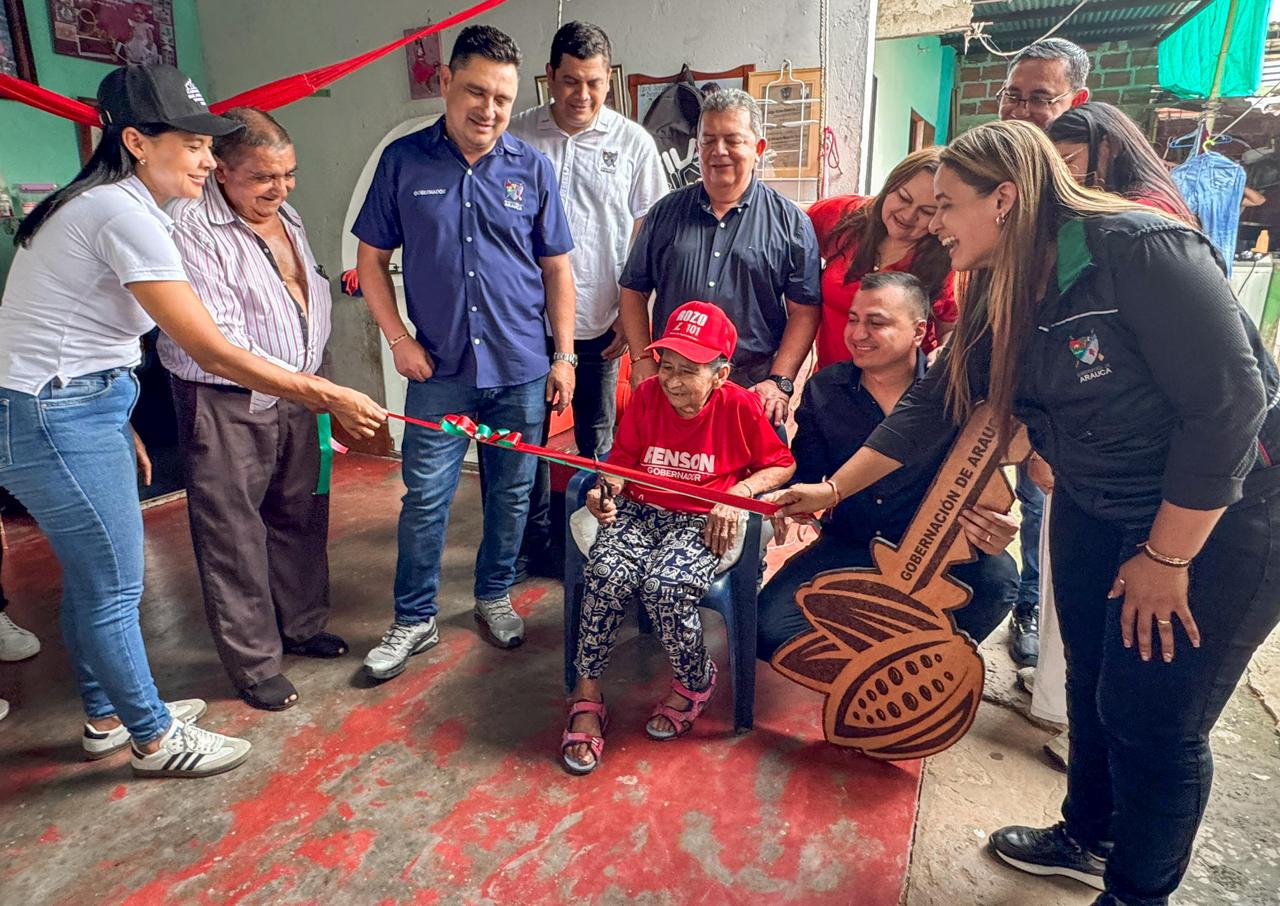 Posteriormente, y en línea con su compromiso de mejorar la calidad de vida de las familias araucanas, el Gobernador lideró la entrega de mejoramientos de vivienda junto al representante a la Cámara, Germán Rozo. En esta jornada se beneficiaron 101 hogares del municipio de Tame, como parte del convenio suscrito con el Ministerio de Vivienda, que contempla la intervención de 971 viviendas en zonas urbanas y rurales de cinco municipios del departamento.