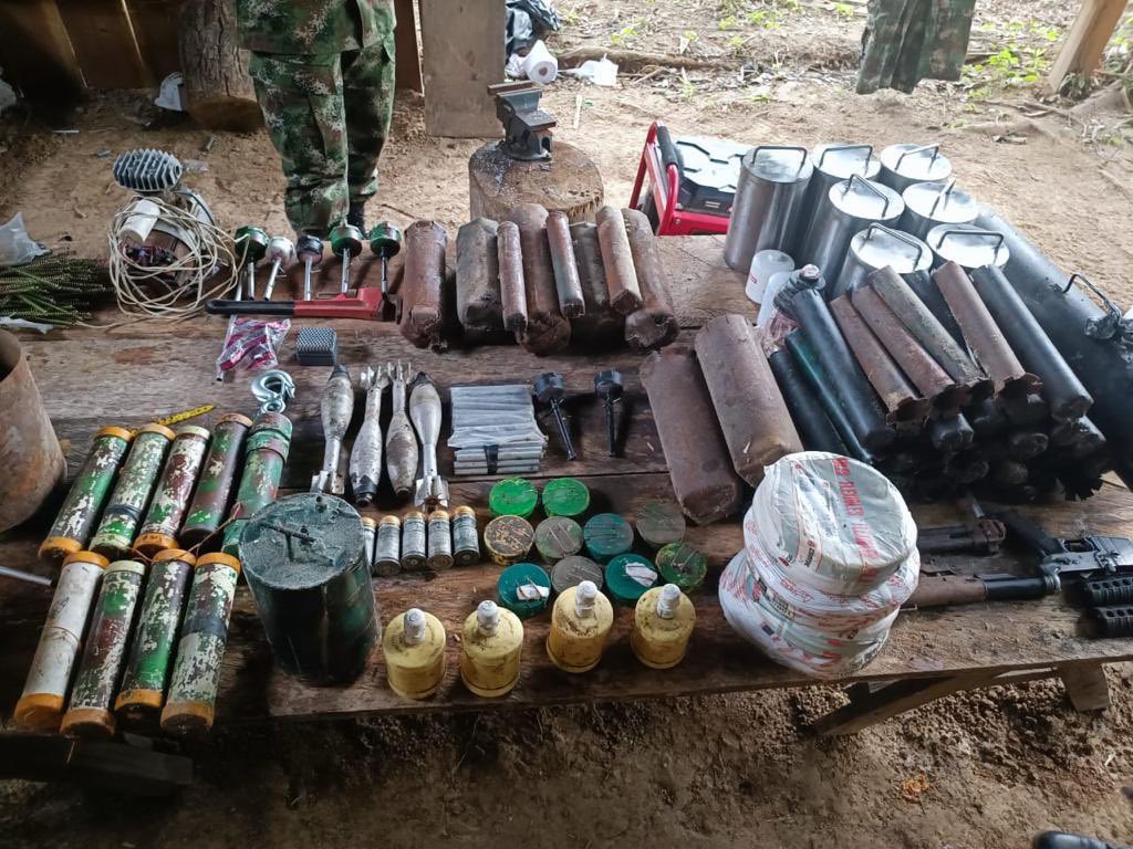 Se han neutralizado también más de dos toneladas de material explosivo y 98 medios de lanzamiento, con los cuales el ELN Frente de Guerra Oriental y el grupo armado organizado, GAO-r, Estructura 10 y 28 pretendían atentar contra la vida de las comunidades, la Fuerza Pública y la fauna de la región.