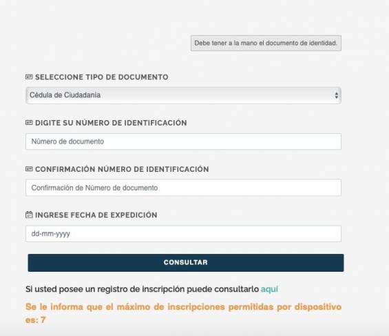 Una vez ahí, se deberán ingresar los datos solicitados como lo son el número de la cédula de la persona y la fecha de expedición de este documento.