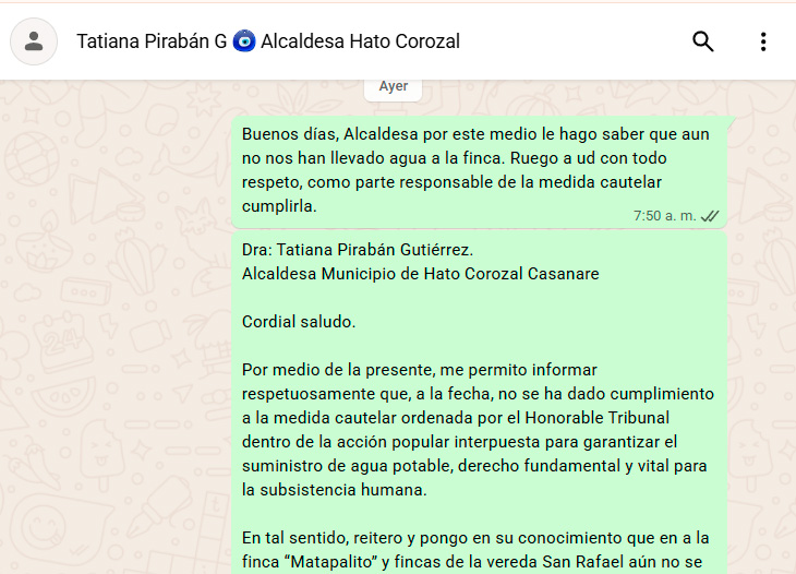 Mientras tanto, las comunidades rurales de Hato Corozal esperan que las autoridades competentes adopten medidas urgentes y efectivas para dar cumplimiento a lo ordenado por el tribunal y evitar que se siga profundizando la vulneración de derechos básicos en una zona que, paradójicamente, continúa esperando respuestas frente a una problemática ya reconocida por la justicia