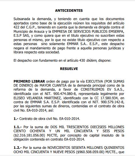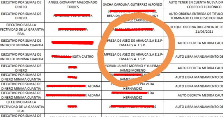 Por temas de construcción del relleno la demanda asciende a 6 mil millones, a la comerciantes Rosa Peñaranda por concepto de combustible le adeudan 60 millones, por alquiler de vehículos, la deuda supera los 90 millones de pesos, a uno de sus exsocios –NEP SA- les adeudan más de 100 millones de pesos, por si fuera poco cursan en su contra 3 demandas laborales, y una acción de tutela de un ex trabajador que supera los 18 millones, así mismo están en deuda con la DIAN.
